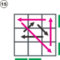 ![]() | (R2 U) (R U R' U') (R' U') (R' U R') | ![]() | (R U' R) (U R U R) (U' R' U' R2) |