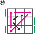 ![]() | R U R' U') (R' F) (R2 U' R' U') (R U R' F') OLL(a01)+OLL(a03) | ![]() | F (R U' R' U') (R U R' F') (R U R' U') (R' F R F') OLL(a03)+OLL(a01) |