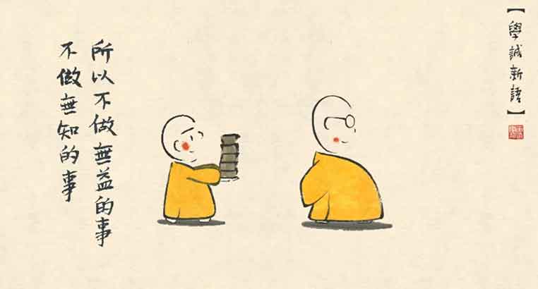 有一天賢二很賣力地把廟里的磚頭從東邊挪到了西邊,然后滿頭大汗地對師父說,師父,您說過做事情可以開智慧,我發(fā)心搬磚從東邊挪到了西邊。本想得到師父的肯定,可師父卻說,這些磚是賢一剛從西邊搬到東邊的。糊里糊涂的賢二,做事的發(fā)心是好,但是,卻因為智慧不足,做了無用功,他自己也很苦惱。做事雖好,但“不做無益的事,不做無知的事”也很重要。